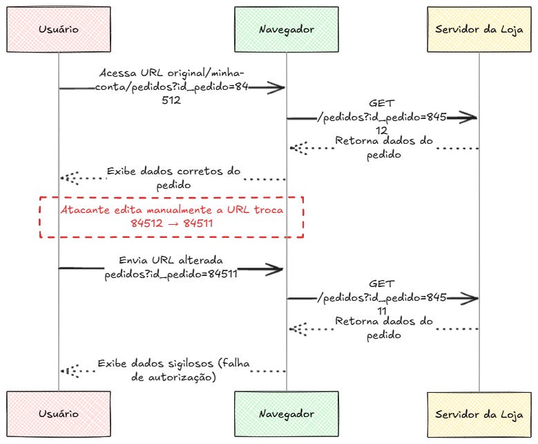 Na maioria dos sites, nada. Mas em um número assustador de sistemas, essa simples alteração te daria acesso direto aos dados, pedidos e informações pessoais de outro cliente.